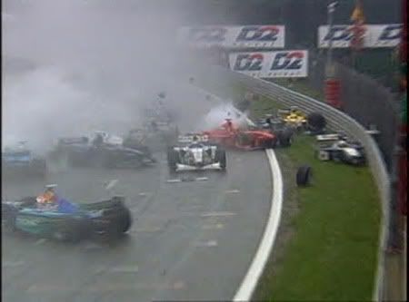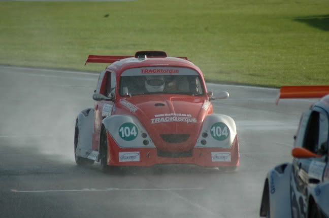 A corrida começa em moist; vou de slick... Lap 2: The weather is now heavy rain.